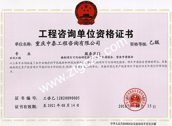 中泰咨詢乙級資質(zhì)